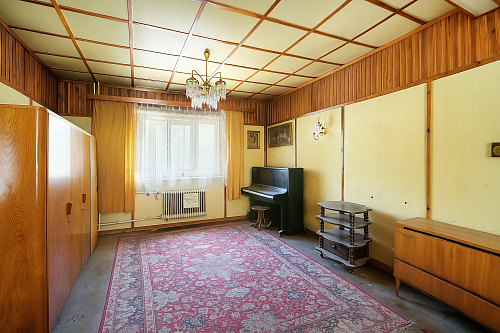 Dům o dispozici 4+1 je v původním stavu a je vhodný k rekonstrukci dle vlastních představ. Je podsklepený (1/2 domu), v domě je ústřední topení na plyn (v současnosti je plyn odpojen), plynový kotel, obecní voda, odpady jsou svedeny do septiku. Rozvržení místností je následující:
